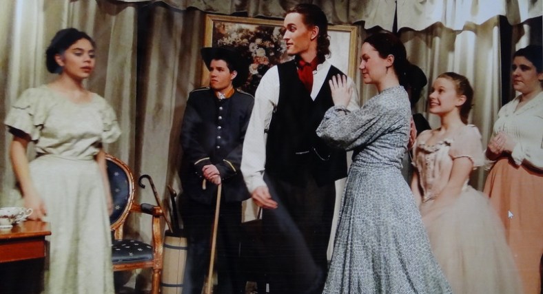 ‘Degas in New Orleans,’ by Rosary O’Neill, directed by Deborah Temple, music by David Temple at the Arthur Seelen Theatre Drama Bookstore. (L to R) Lucy Makebish, Patrick O’Shea, Trevor Kowalsky,