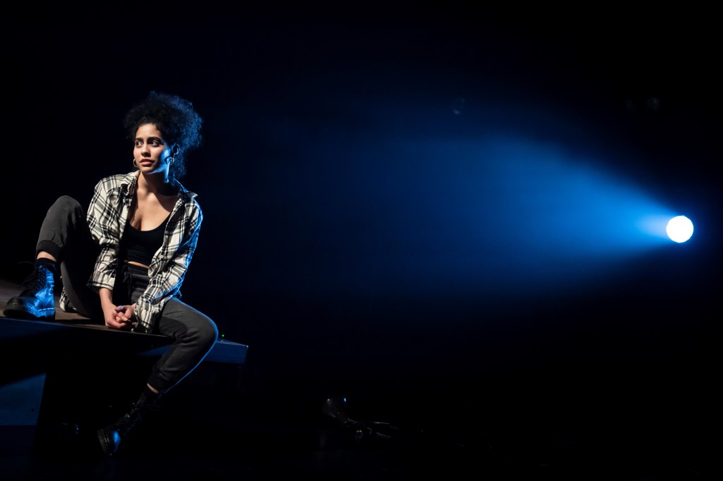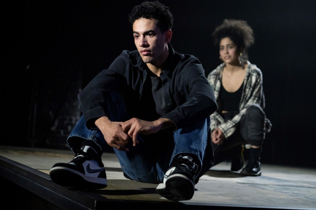 One of the most fascinating elements of the superb Martyna Majok’s Sanctuary City, directed by Rebecca Frecknall, is the symbolic stylization conveyed by the script. Majok’s script is a powerhouse. It is rhythmic, poetic and a rap of eternal, brief moments of brilliance in time. Majok’s layered work elucidates how relationships begin, not with long conversational pieces, but with connecting, truncated slips of thought. She suggests that relationships evolve through the power of memory and imagination, the interactions between “B” (the adorable and heartfelt Jasal Chase-Owens), and the emotionally wired “G” (the wonderful Sharlene Cruz,). These prove to be fatal, fairy wisps in the first part of the production.