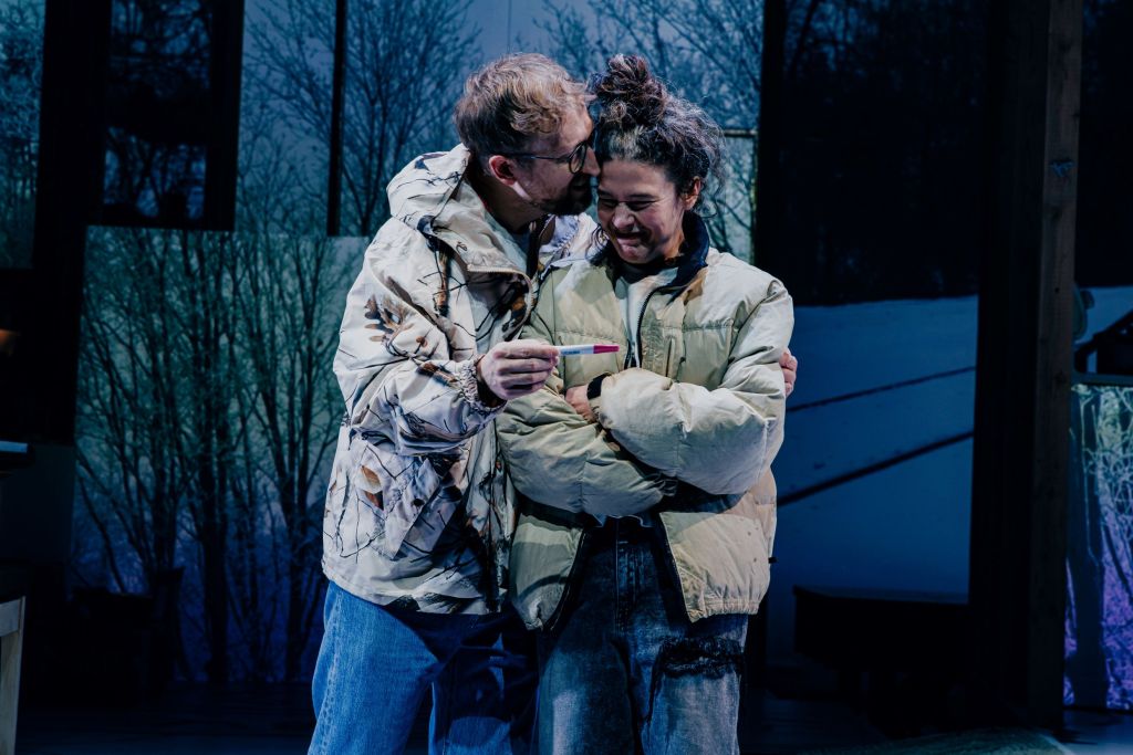 The first song is a striking, poignant remembrance of their baby who never makes it into life, a song of love and mourning. This devastating experience five years prior informs their roller-coaster emotions in the present when Abigail discovers the blue line of her new pregnancy. Though “over the moon,” Shaun and Abigail can’t allow themselves the luxury of celebrating, because “what if?”