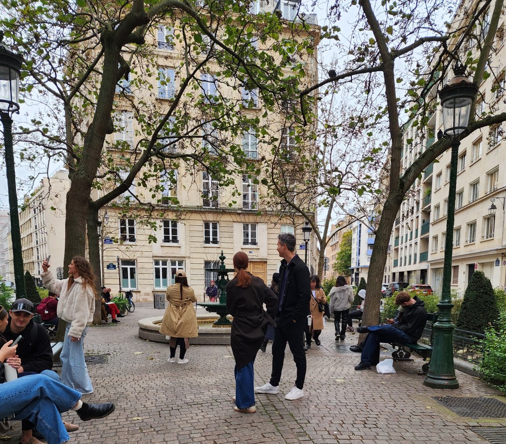 Walking up past the Sorbonne, and past the Pantheon, I arrived at the little park and environs where the TV series Emily in Paris had set-ups for various external shots.