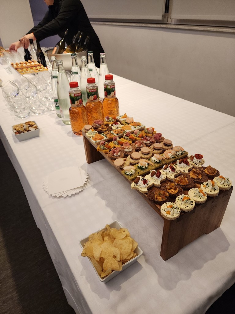 Before, during and after the presentation, there were light bites and wine to accompany the nibbles, which added to the atmosphere of conviviality. Some of Rosary’s former friends stopped by and she spoke with them via Zoom.