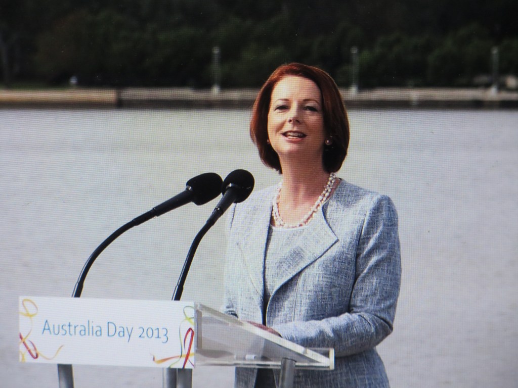 Looby uplifts Gillard’s courage to be who she chooses to be. If it rocks the status quo in conservative circles, so be it. She once stated that she could never run for a political position in the U.S. with her lifestyle. She is an atheist, childless and has lived with her partner Tim Mathieson since 2006. They are not married. During her tenure as PM, Looby includes clips by the media during which she receives incredible pressure about her lifestyle and her relationship with Tim and his career. Gillard’s responses were humorous and clever. Of course Jones and Abbott piled on the heat and abused her with her unhousewifely behaviors, choice of partner, not having children and having a career in politics. In her speech credited and included above, she answers Abbott’s sexism.