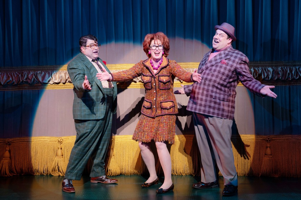 However, this is Mr. Saturday Night’s persevering second chance. With the added lift of the music and dance, and overall nostalgic silliness of 50s TV bits, where actors dress in hot dog costumes, cigarette boxes, etc., (Jordan Gelber, Brian Gonzales, Mylinda Hull) Mr. Saturday Night offers a retrospective on a history younger audiences don’t know. Also, it is an encomium to comedians who were huge greats in their time, some of whose stars still shine in films on Turner Classic Movies and black and white TV reruns.