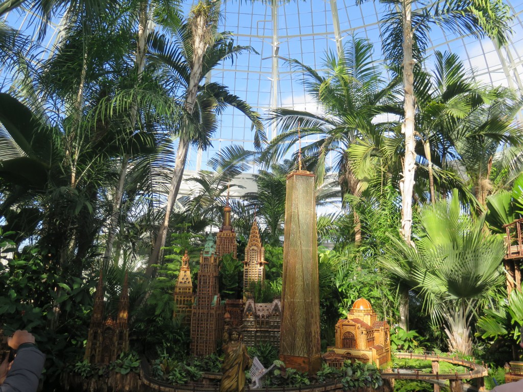 Each year various innovations are made. Displays change. Sometimes, I find I lose whole areas of New York City replicas (Coney Island, Central Park, Museum Row,) that normally are featured together. When I don’t see them, I wonder if they have been saved and stored for next year. But then I find them again in a different section of the Enid A. Haupt Conservatory than they were the previous year. Indeed, there appears to be an infinite variety of placements of the over 175 replicas that compromise the permanent Holiday Train Show collection that collaborators Applied Imagination and NYBG create for one of the most well attended events the Garden offers.