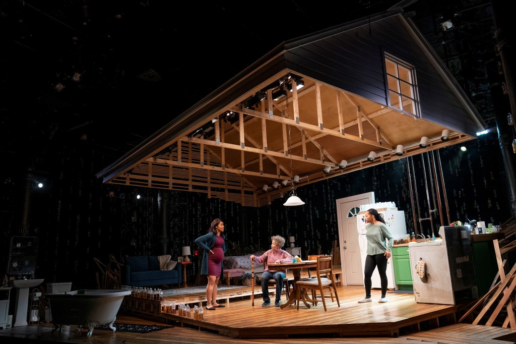 Blain-Cruz does a smashing job referencing the impact the spiritual plane of existence has upon the material life of the sisters which is sensationally wrought in Act 2 toward the conclusion when they attempt to place the finished quilt on their mother’s bed and a mystical experience occurs. It is then when Zambia becomes the channel between the past spiritual legacy and the present and the pathway toward healing is realized.