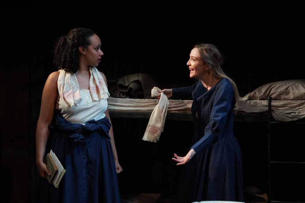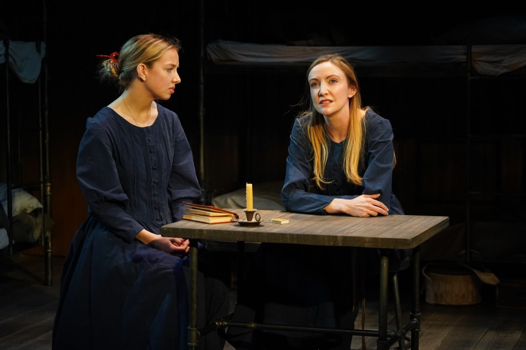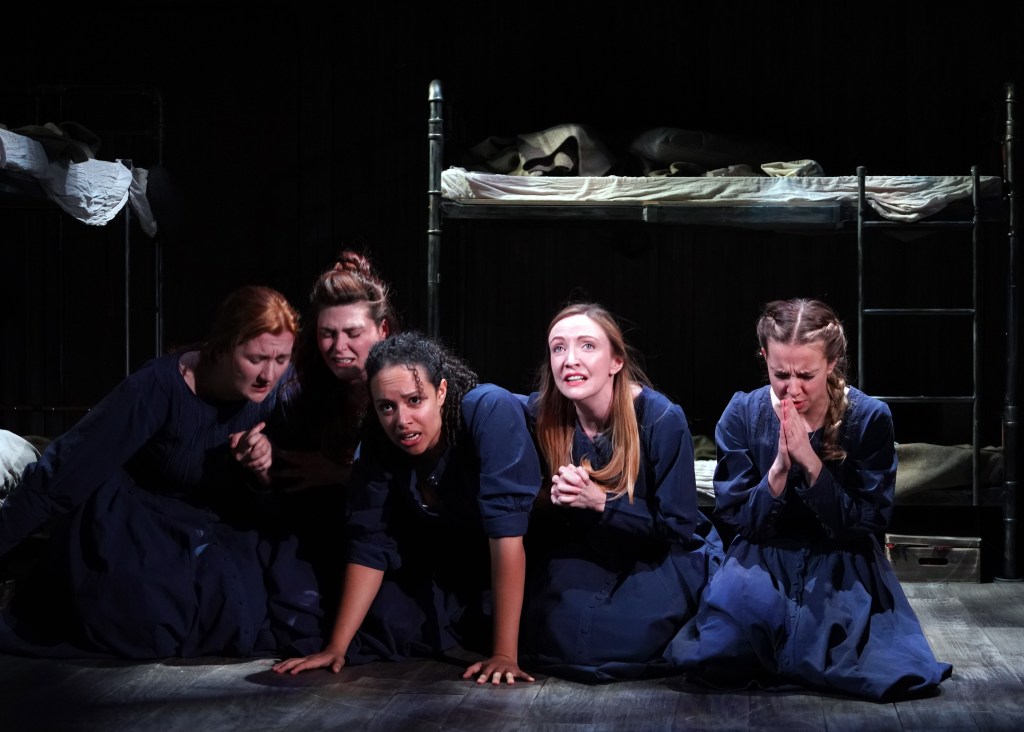 Judith Noone (Caroline Strange), a Jamaican mixed-race woman drips worldly experience. She exposes the fact that Ellen Clarke (Labhaoise Magee) and Hannah Gibney (the golden voiced Mary Mallen) are public women/prostitutes, despite their pretensions that they have lived otherwise. Importantly, with a sense of autonomy as sex workers, these three have staved off death and starvation where others, bound up by religion with no way out, died and were buried in mass graves. Of all of the five “orphans,” Caroline Strange’s Judith, is the most grounded, authentic and realistic. Blunt and directed, she is a natural leader who chides and commands the rest of the women, reminding them of their purpose to rise up from the lower classes to respectability and success, so they might forge a new identity with this incredible opportunity.