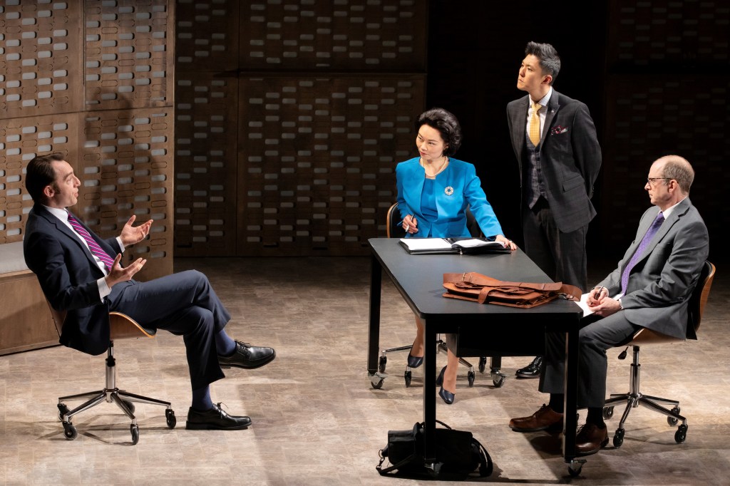 Golden Shield by Anchuli Felicia King, directed by May Adrales currently at Manhattan Theatre Club is a thematically rich and profound work that looks into corporate greed, political activism, digital censorship as a means of control, the ethic of understanding a different language through translation without considering cultural variance, and relationship reconciliation redux. Through the lens of a jury trial against corrupt actors who refuse to consider the consequences of their actions when digital efficiency and progress is at stake, King examines ethical responsibility and the fallout when accountability is measured in litigation awards.