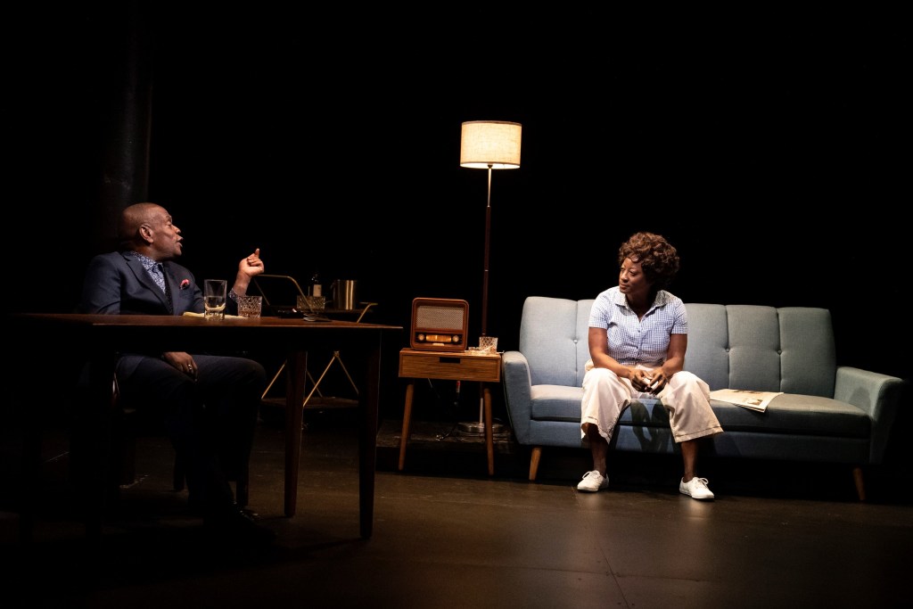 The unadorned, bare bones production highlights the arguments Baldwin and Buckley presented at Cambridge in response to the question, “Has the American Dream been achieved at the expense of the American Negro?” With a minimalist set, two desks, chairs, lamps staged with the audience on three sides at the Anspacher Theater, the evening replicates the words if not the tone, ethos or dynamic drama of Baldwin (Greig Sargeant) and Buckley (Ben Jalosa Williams) in their face-off.