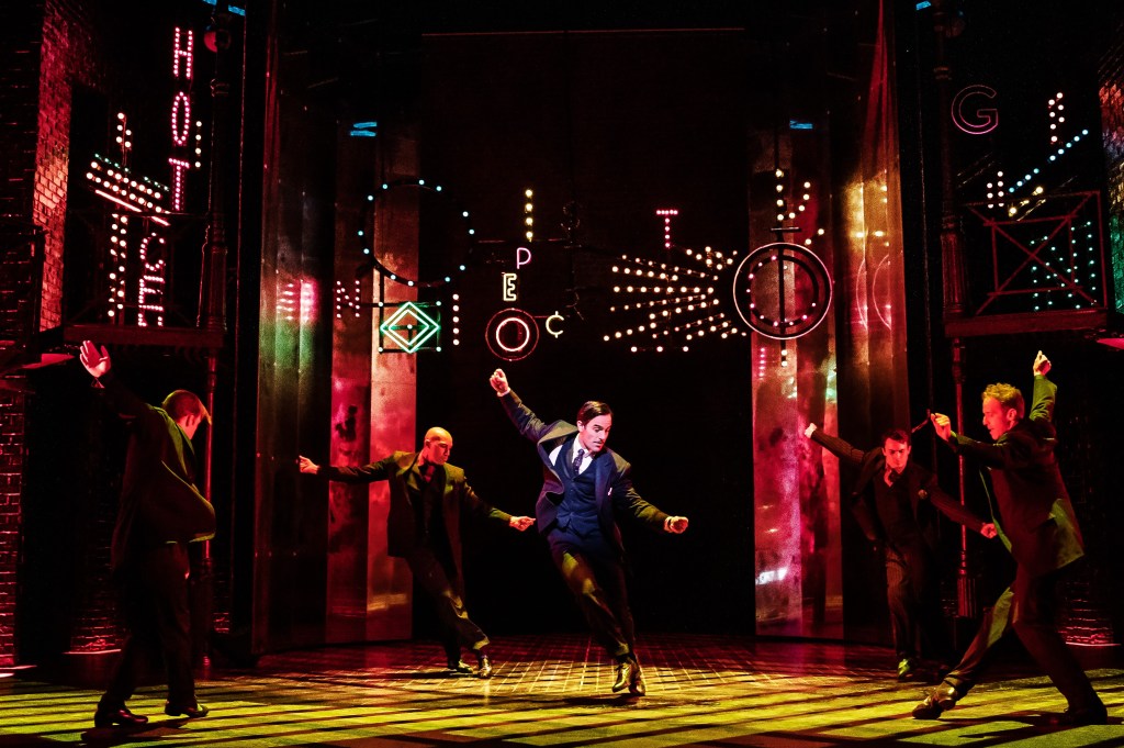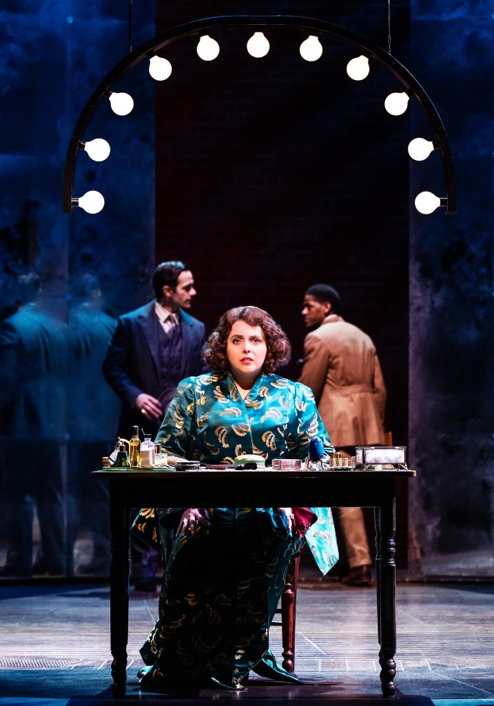Eventually, even Karimloo (who beautifully sings throughout and does a bang-up job in “Temporary Arrangement”), when Nick sings about his going off by himself to make money…has difficulty with latter scenes between himself and Feldstein. When Feldstein’s Fanny attempts to save their marriage by outtricking a trickster, his response to Fanny’s gambit is interesting, if not lackluster. Nick’s reckless gambling has placed him out of Fanny’s status and wealth. Feeling emasculated when his project goes bankrupt, he is driven back to his criminal ways to recoup, which he never can because he lands himself in jail. The urgency between them in the parting scenes right before his prison sentence and after fall flat. We don’t care all that much about her heartbreak because Feldstein’s Fanny doesn’t seem to either by the “Finale.”