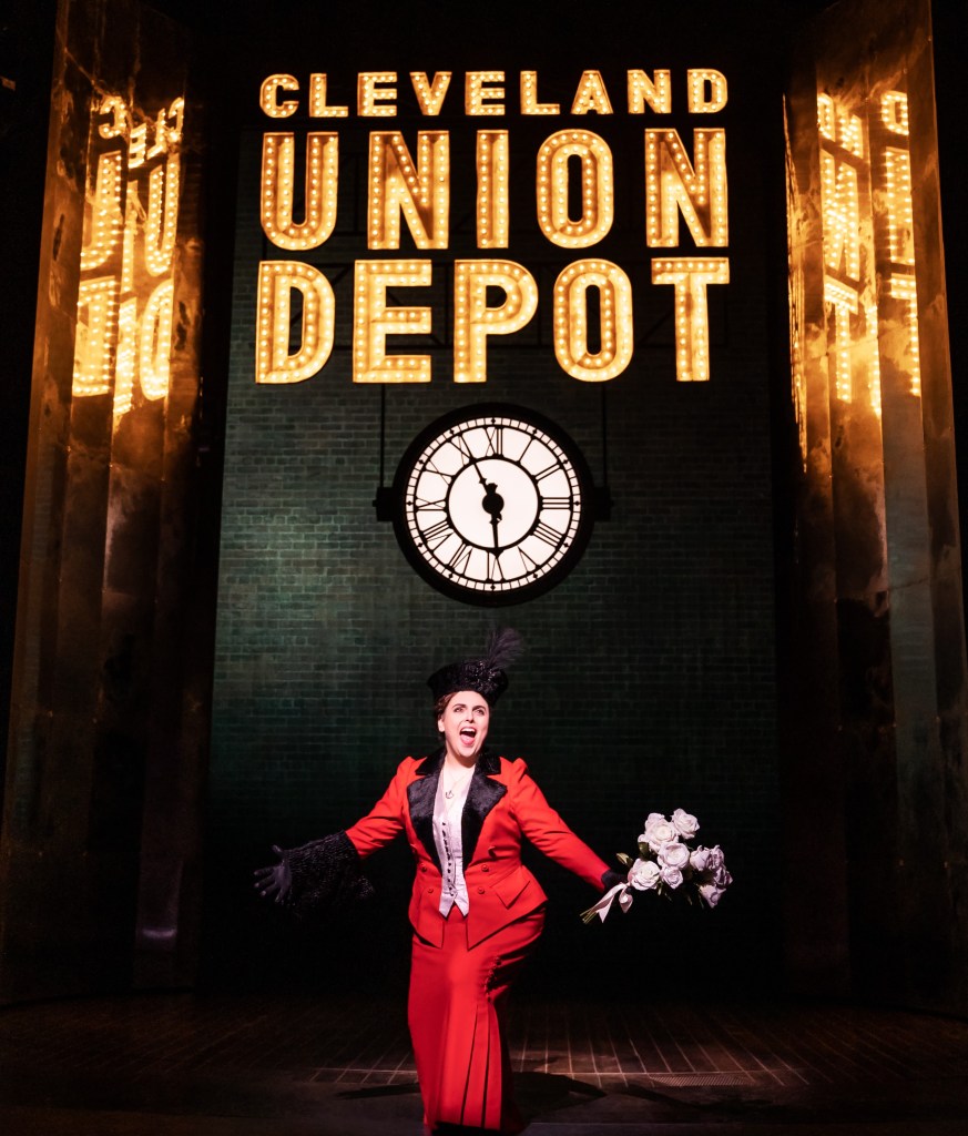 Beanie Feldstein has the appropriate determination to portray “the greatest star.” Nevertheless, during specific moments, she appears to be overwhelmed by the complex and profounder transitions the role requires as Fierstein’s book travels in flashback from the opening scene where Fanny gets ready to go onstage. The flashback of her memories follow how she moved from childhood to teen rising star to successful Follies celebrity who becomes an icon in her time. Uncloaked is her first anointing from gambler Nick Arnstein who compliments her on her talent. And as her star rises she becomes worthy of their budding relationship and blossoms, as his star dims and his wealth diminishes. By that time they’ve married.
