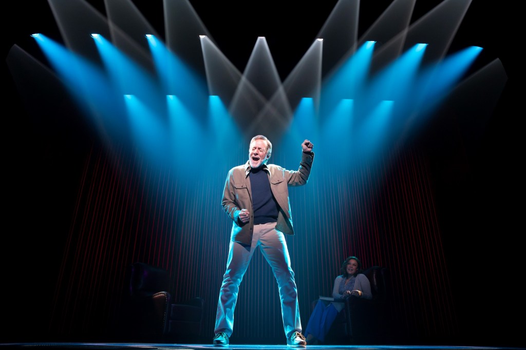 How does one take the measure of a man toward the end of his life? Does one examine his relationships with others or does one examine the relationship he has with himself? In The Neil Diamond Musical, A Beautiful Noise, directed by Michael Mayer, currently at the Broadhurst Theatre, book writer Anthony McCarten (The Collaboration, Two Popes) approaches the question using the conceit of a therapeutic doctor/patient relationship.
